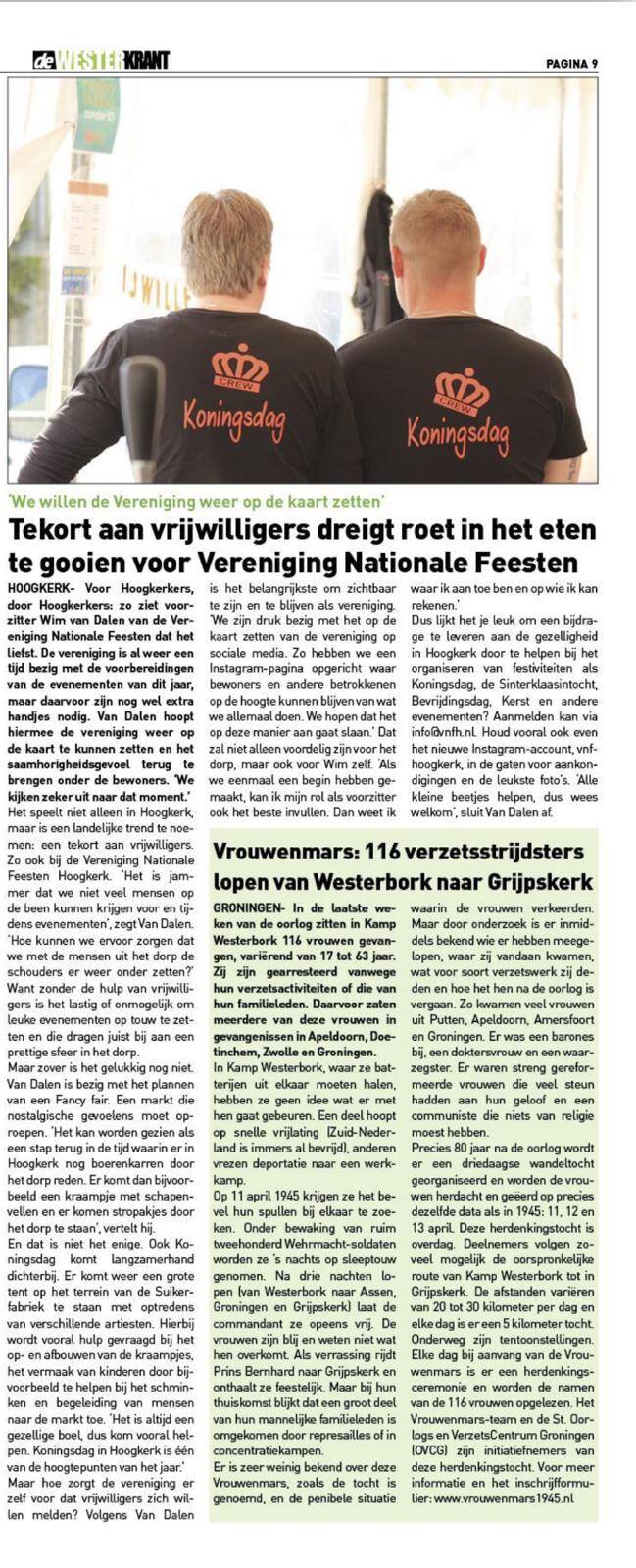 De Vereniging Nationale Feesten Hoogkerk is aangesloten bij de Bond van Oranjeverenigingen en staat ingeschreven bij de Kamer van Koophandel te Groningen en bestaat sinds 1972. De Vereniging Nationale Feesten Hoogkerk stelt zich ten doel om evenementen te organiseren voor alle Hoogkerkers.